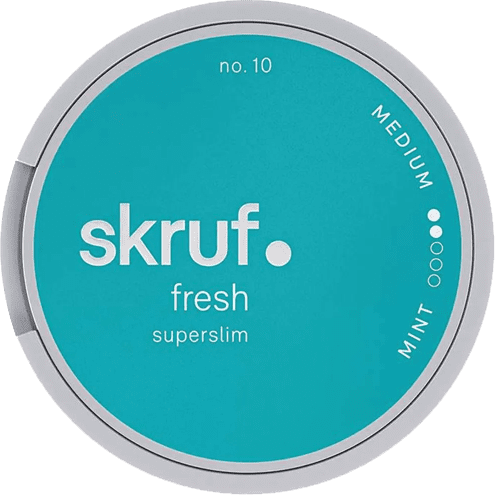 Skruf No. 10 Fresh Mint Superslim från varumärket Skruf är White Portion med normal styrka och med mint och traditionell smak. Skruf No. 10 Fresh Mint Superslim kommer i slim format och varje dosa rymmer 24 portioner. Skruf är tillverkat av Skruf Snus.