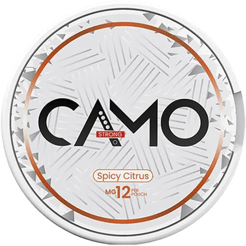 CAMO Spicy Citrus från varumärket CAMO är vitt snus med extra stark styrka och med citrus och chili smak. CAMO Spicy Citrus kommer i slim format och varje dosa rymmer 20 portioner. CAMO är tillverkat av UAB Global Snus.