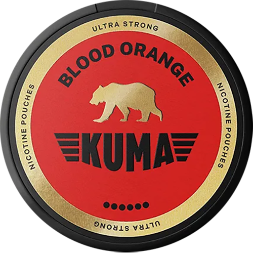 KUMA Blood Orange är en nikotinportion i kategorin vitt snus och tillverkas av Après Nicotine AB. Produkten har ett slimmat format och innehåller nikotin, men ingen tobak. Den klassificeras som extra stark med en nikotinhalt på 11 mg per portion och 20 mg/g.