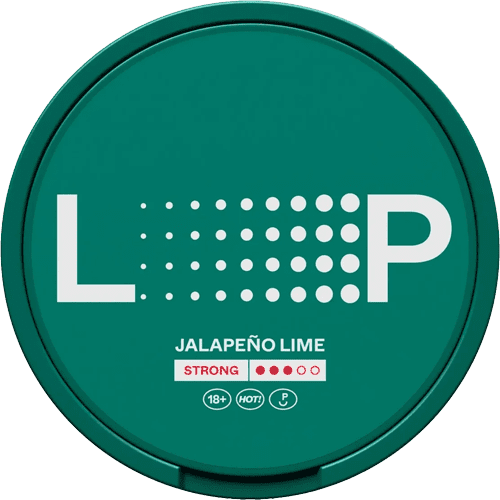 LOOP Jalapeno Lime Strong är ett tobaksfritt vitt snus från varumärket LOOP, tillverkat av Another Snus Factory. Denna produkt kombinerar en kryddig smak av jalapeño med en frisk syra från lime, vilket ger en intensiv och uppfriskande smakupplevelse. Nikotinpåsarna kommer i ett slimmat format som ger en diskret och bekväm passform under läppen, perfekt för daglig användning. Med en nikotinhalt på 1,5%, motsvarande cirka 9 mg nikotin per portion, klassificeras LOOP Jalapeno Lime Strong som stark med styrka 3 av 4 på LOOP:s nikotinskala. Varje prilla väger 0,625 gram och varje dosa innehåller 22 portioner, vilket ger en totalvikt på 13,75 gram. Produkten tillhör kategorin all white och är helt fri från tobak men innehåller nikotin, vilket gör den till ett modernt och fräscht alternativ till traditionellt snus. LOOP Jalapeno Lime Strong är en produkt för dig som vill ha en kraftfull nikotinupplevelse med en tydlig smakprofil i ett miljömedvetet och stilrent format. Med en hållbarhet på cirka 12 månader är denna produkt enkel att förvara, även utanför kylskåp, vilket gör den både praktisk och smakfull i vardagen.