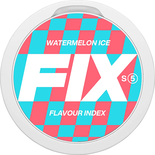 FIX Watermelon Ice från varumärket FIX är vitt snus med extra stark styrka och med frukt smak. FIX Watermelon Ice kommer i slim format och varje dosa rymmer 20 portioner. FIX är tillverkat av Habit Factory.