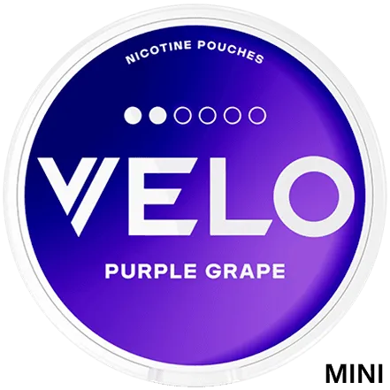 VELO Purple Grape Mini, tidigare känt som VELO Groovy Grape Mini är ett vitt snus från VELO, tillverkat av British American Tobacco (BAT). Produkten är helt tobaksfri och erbjuder en smak av röda druvor i ett diskret miniformat. Med en nikotinhalt på 6 mg per portion och 11,9 mg/g är VELO Purple Grape Mini klassificerad som normal styrka, vilket gör den till ett balanserat val för användare som söker en mildare nikotinupplevelse utan tobak.